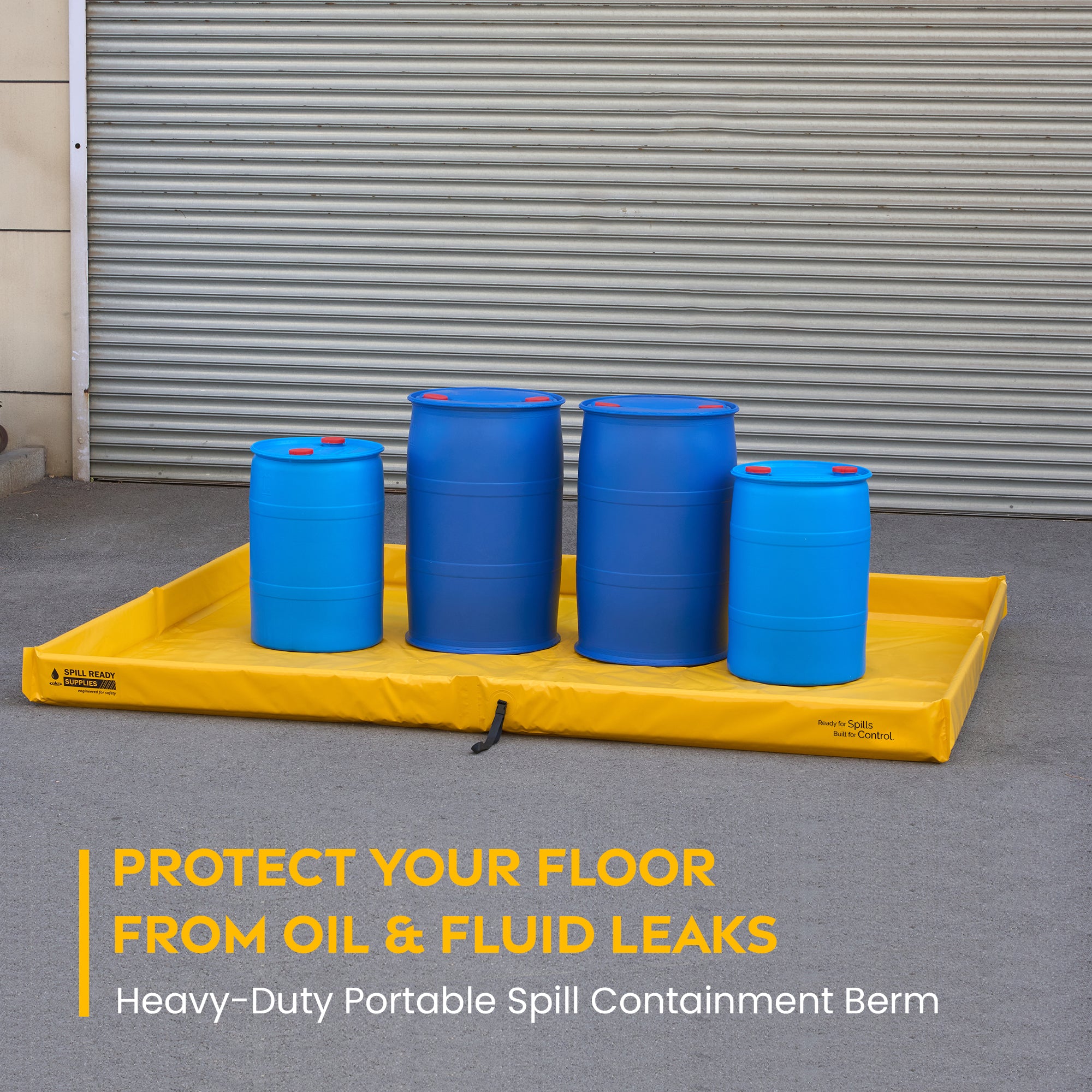 Foam Wall Spill Containment Berm, 22oz PVC coated | 4' x 8' x 6inch | Yellow | 3/4"-1" Drain