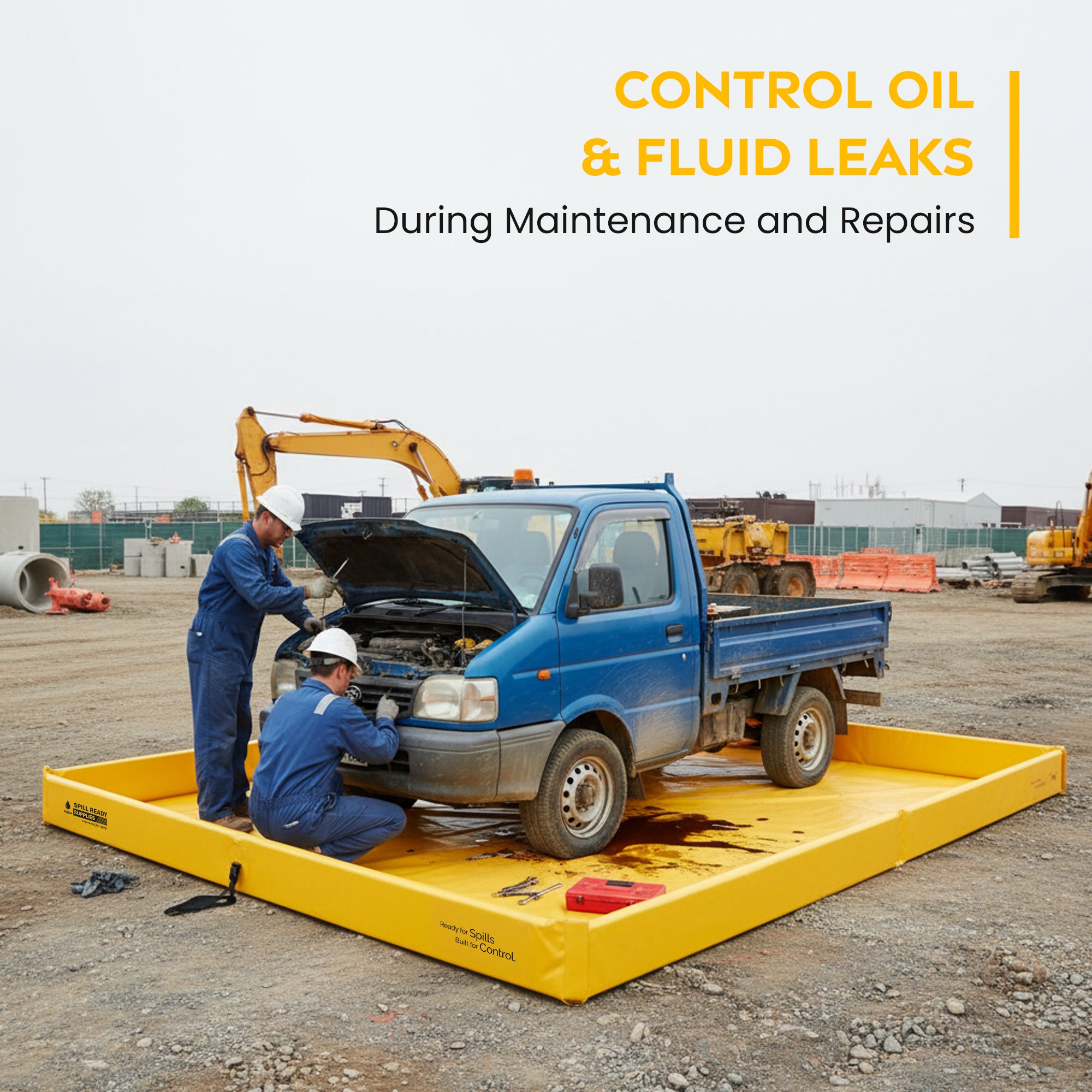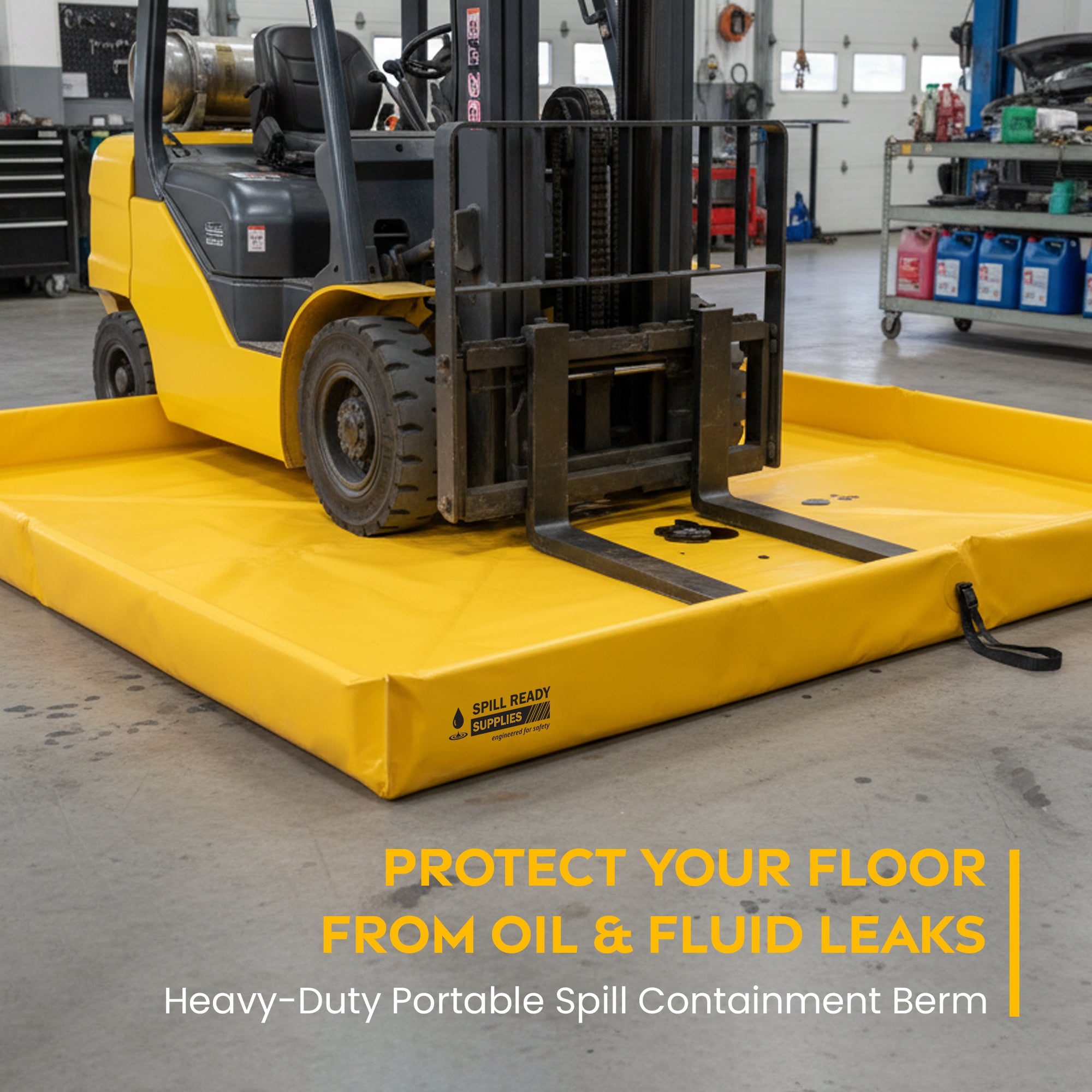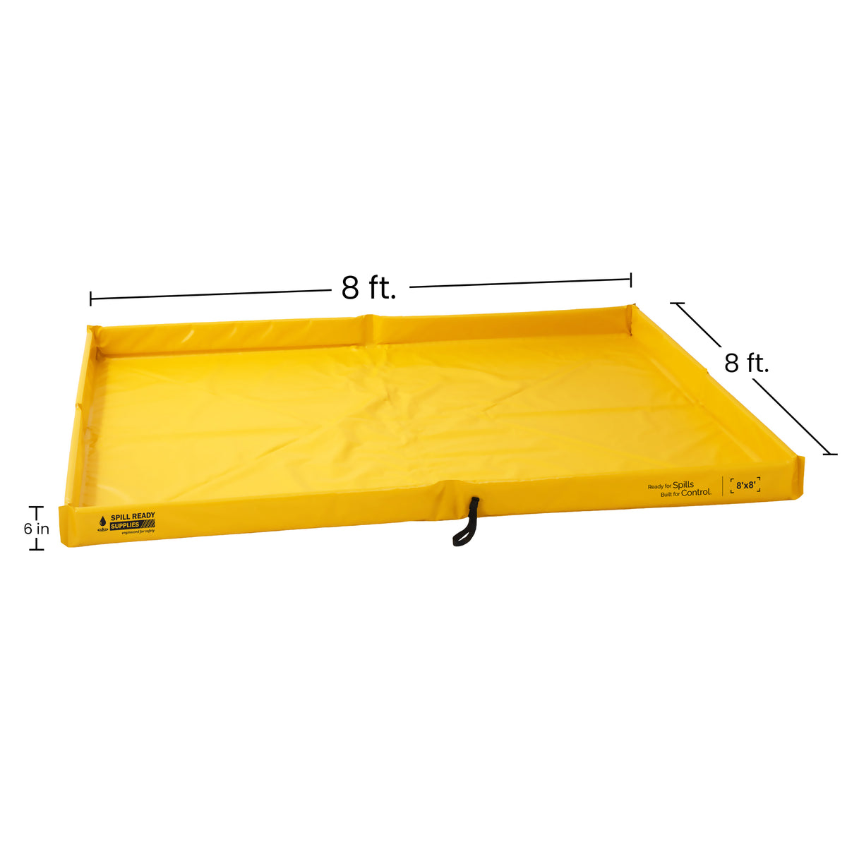 Foam Wall Spill Containment Berm, 22oz PVC coated | 8' x 8' x 6inch | Yellow | 3/4"-1" Drain