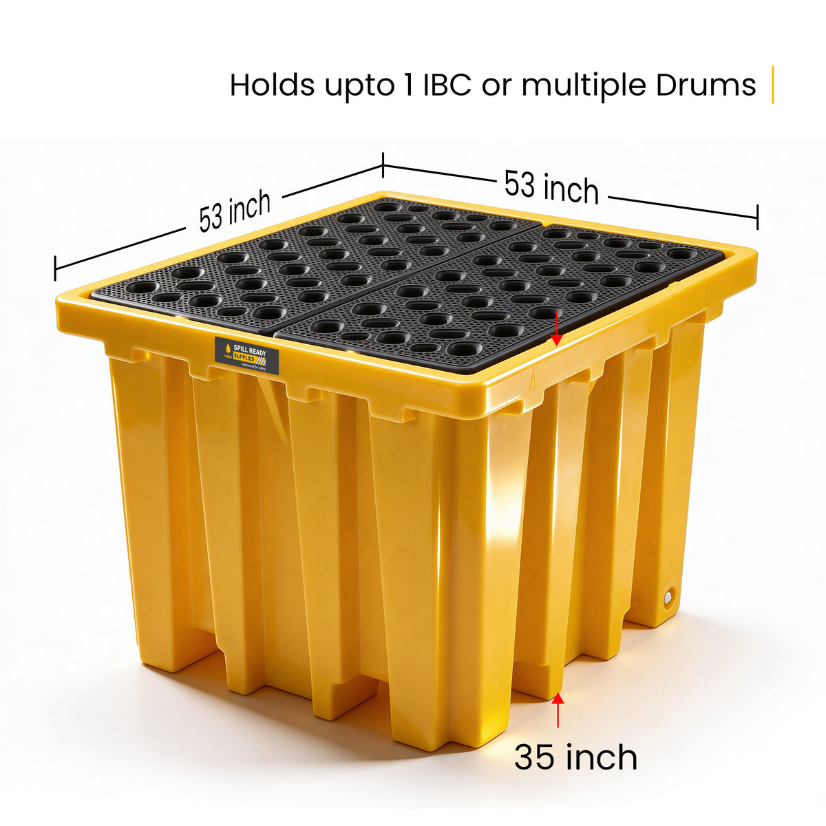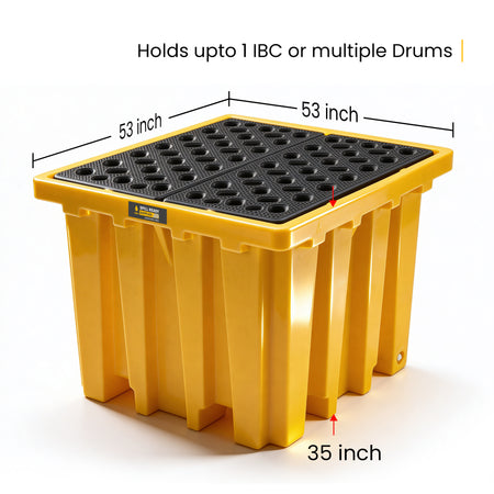 IBC Spill Containment Pallet – 53" x 53" x 35" with 343 Gallon Sump, HDPE Tote Containment, Yellow