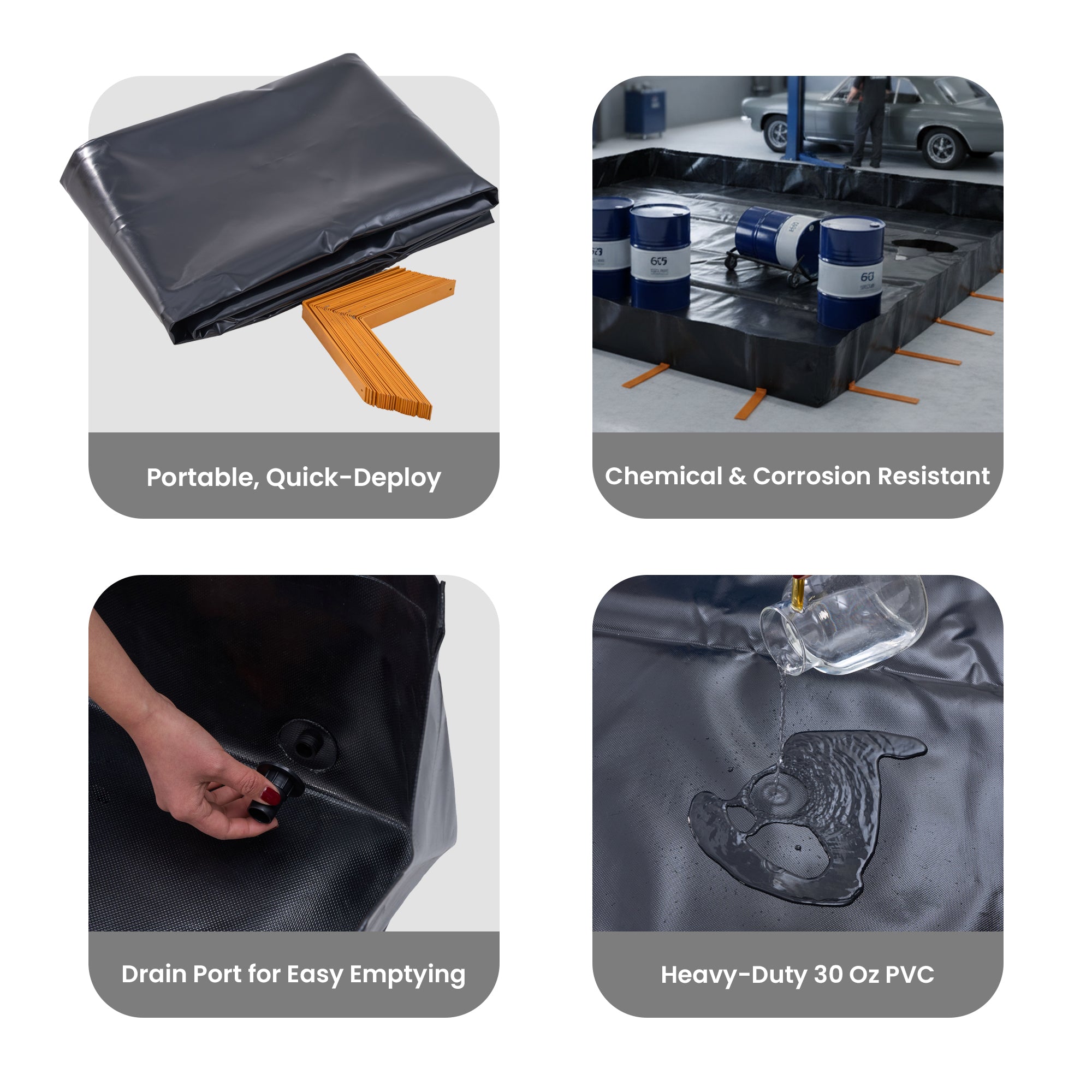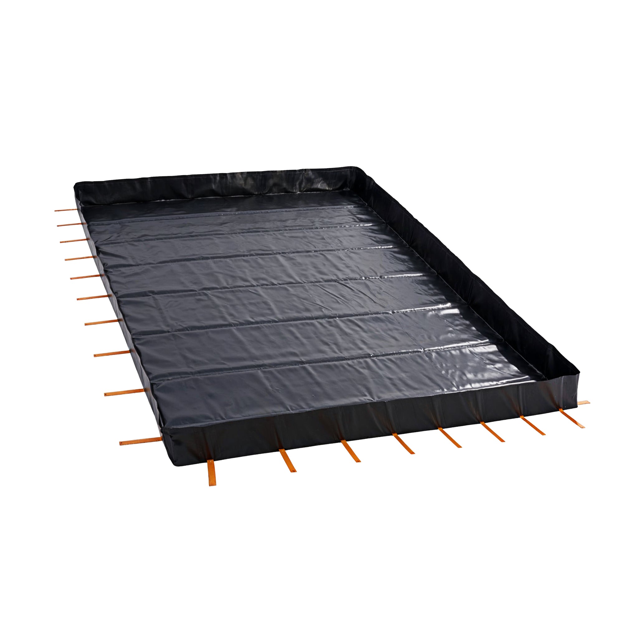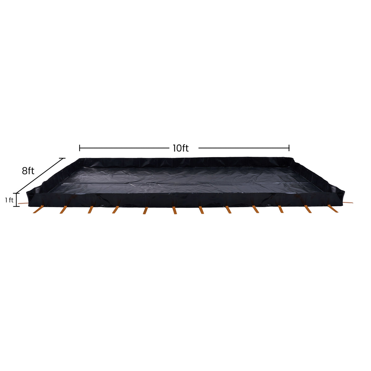L-Bracket Spill Containment Berm, 30oz PVC Coated | 8' x 10' x 12inch | 3/4"-1" Drain | Black, Drive Over