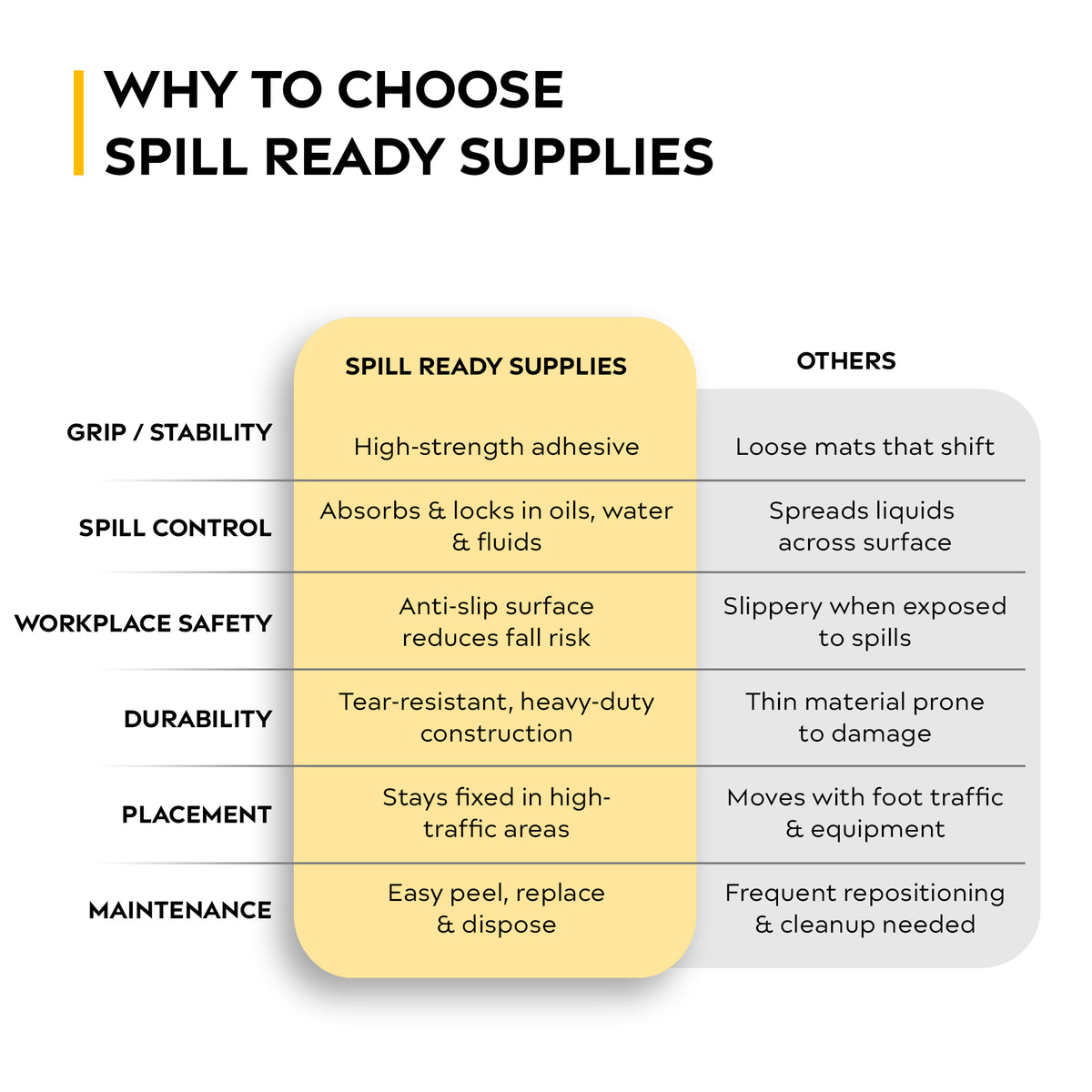 Adhesive Absorbent Grippy Floor Mat Roll - 3' x 5' - 3 mm - Black, 10-Pack Precut Mats